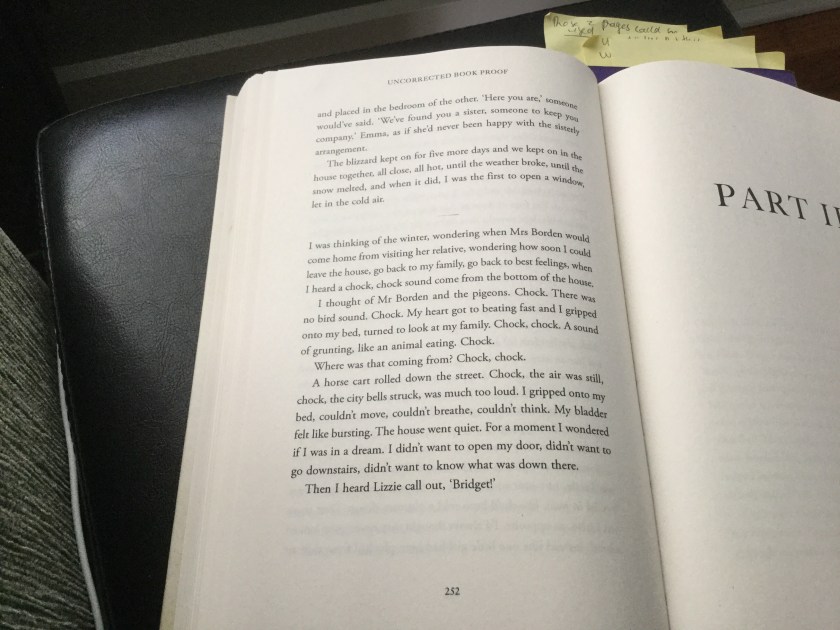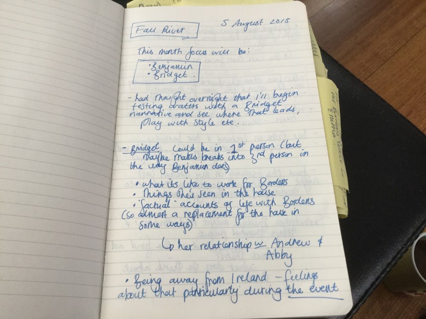 As you can see, it’s not particularly interesting, not even particularly good writing but each day I sat down with Bridget, her voice shifted into her own and I started getting a better sense of how she might have felt about the Bordens and what she might know about the family, the secret things.