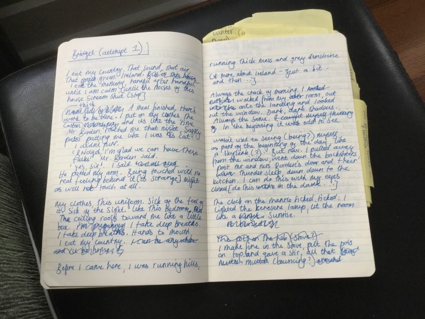 I was terrified and overwhelmed when I began writing Bridget as a narrator into the novel (she was once a peripheral character. Now she’s probably my favourite part of the book). Want to see me at my most vulnerable on the page? Here are some Bridget excerpts from various stages of drafting, right to the finished page. Much of what I wrote never made it into the manuscript that was submitted to publishers, let alone the final version of the book. But writing passage after passage of false starts helped me shape the character and allowed me to strategise how I would use Bridget in the book.